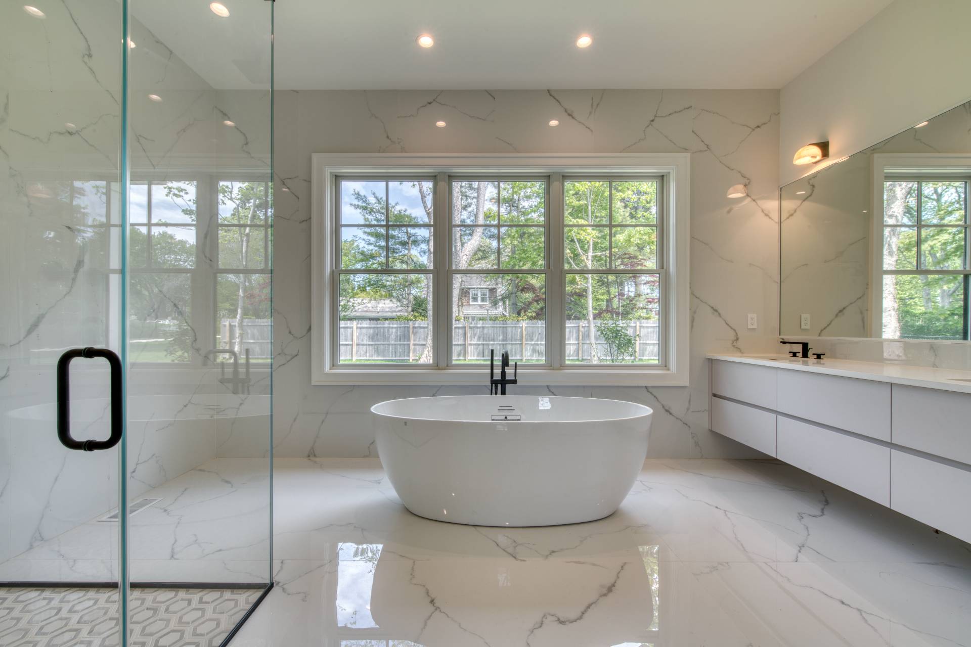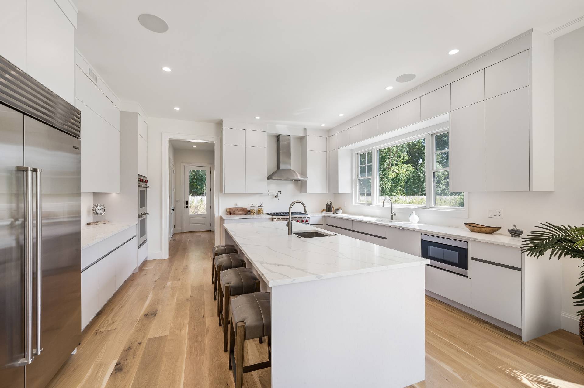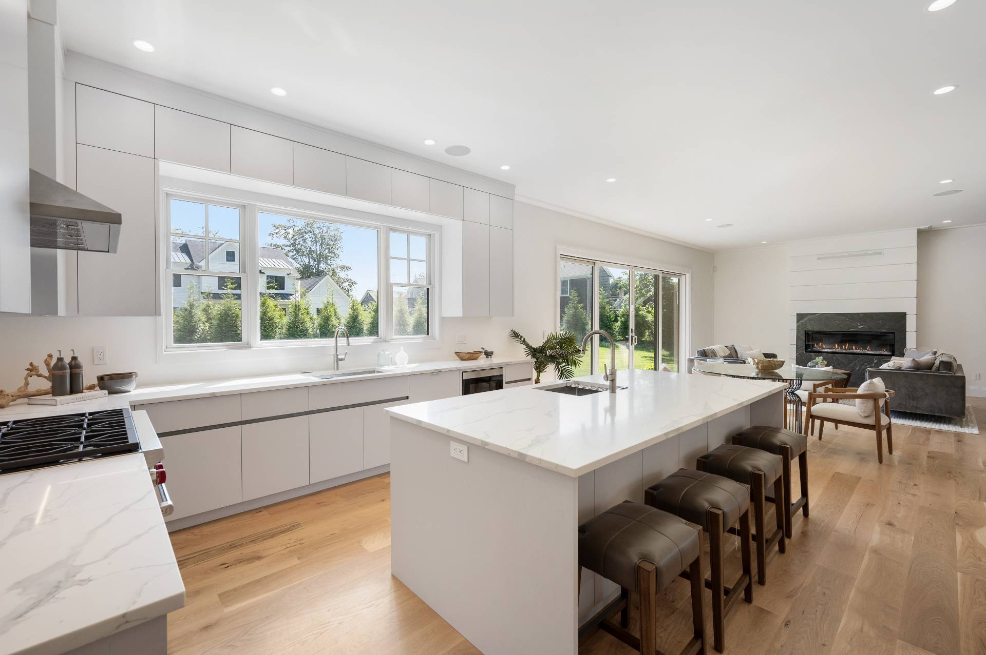 Don't miss out on this amazing opportunity to buy a newly constructed house in East Hampton Village. This home is expertly built with a perfect mix of modern style and timeless charm. As you step inside, you'll be greeted by natural light filling the open layout. The kitchen and great room with a cozy fireplace are bathed in warm, inviting light. You'll love the top-of-the-line Sub-Zero appliances, kitchen island, and easy access to the rear patio, wet bar, and dining room. The main level also offers an office/bedroom, powder room, and a convenient laundry room. The luxurious master suite features patio access, a captivating fireplace, dual walk-in closets, and a high-end master bath with a relaxing soaking tub. Upstairs, you'll find four more bedrooms, each with its own ensuite bathroom and walk-in closet. The second laundry room on this level makes life even easier. Plus, there's an attached garage and beautifully landscaped grounds that add to the appeal. The lower level is a blank canvas for you to personalize, with a media room and a gym ready for your personal touch. Situated on a large 0.86 acre lot, this house is conveniently located near the shopping and restaurant scene in East Hampton Village. Get ready to experience the best of Hamptons living, where luxury, elegance, and convenience come together.
