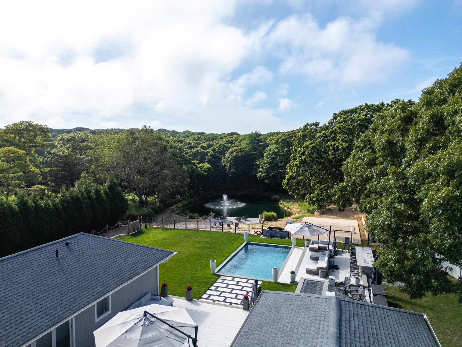 Escape to this stunning, recently renovated custom retreat where over 5,000 square feet of total living space meets the natural beauty of a private pond. Tucked away on 1.5 acres of mature, lushly landscaped grounds, this residence offers the perfect blend of luxury and secluded comfort. The expansive main level is flooded with natural light, featuring floor-to-ceiling glass doors that open seamlessly to a heated gunite pool and a custom outdoor kitchen-creating an effortless indoor-outdoor flow ideal for hosting large gatherings.Designed with entertaining in mind, the open-concept layout centers around a warm wood-burning fireplace and a chef's custom kitchen that flows into a spacious dining area. With six generously sized bedrooms, there is ample space for family and guests alike. The primary suite, located in its own private wing, serves as a true sanctuary with a luxurious en-suite bathroom featuring a two-person soaking tub, a glass-enclosed shower, and a custom-designed walk-in closet.The property's functional elegance extends to the walk-out lower level, which provides an additional 2,000 square feet of newly renovated living space, including a laundry room and significant storage. Outside, the personal oasis is completed by an in-ground pool, and pond-facing deck perfect for enjoying sunsets over the peaceful landscape. Additional features of this exceptional estate include a three-car garage and an oversized private driveway, all meticulously maintained to the highest standard.