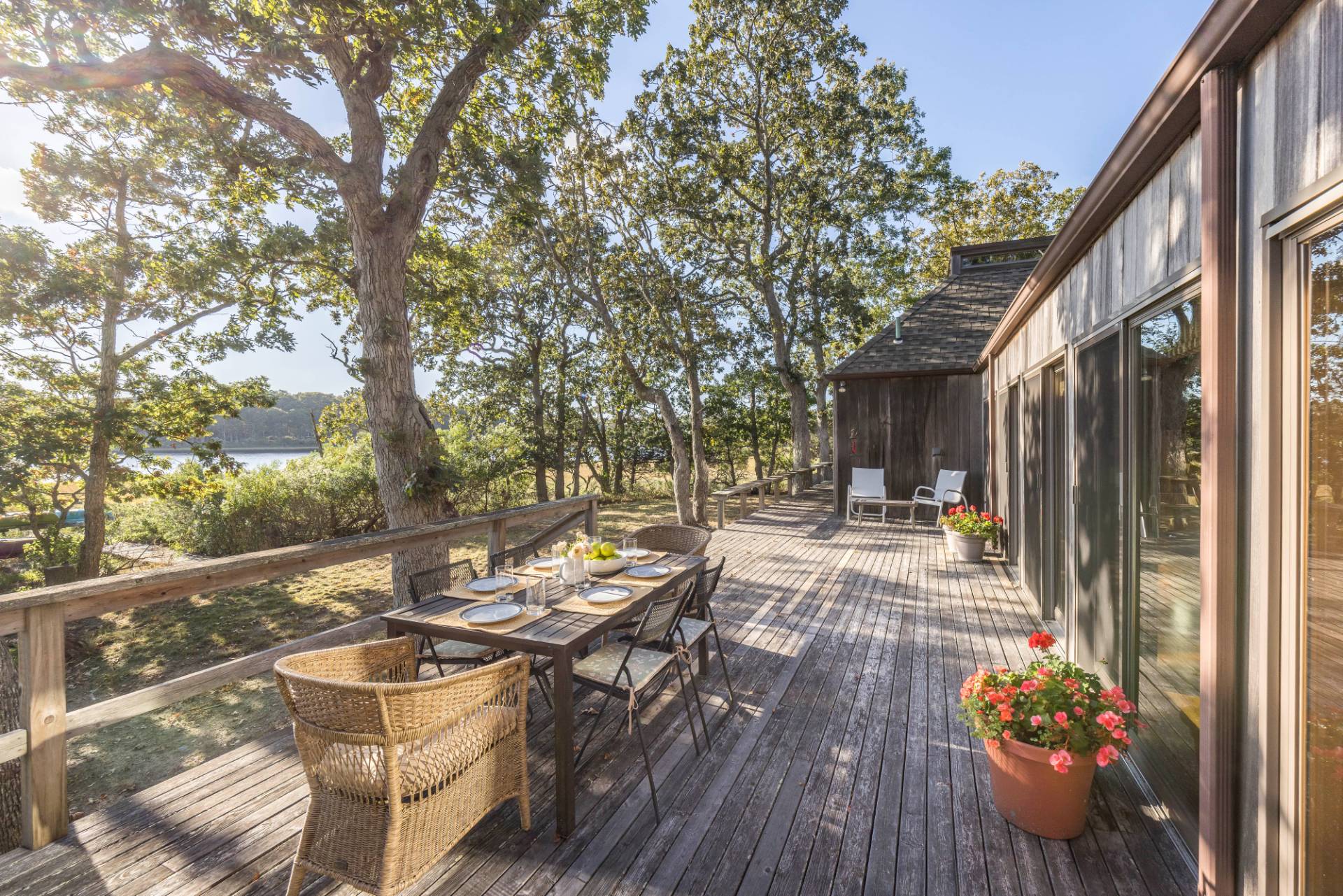 Set on one of East Hampton's most picturesque and bucolic lanes, 100 Gerard Drive offers a rare opportunity to own directly on Accabonac Harbor with sweeping western-facing water views and a private dock. Spanning just over an acre, this special property is all about location, offering a front-row seat to shimmering sunsets, gentle harbor breezes, and effortless access to the bay beach just seconds away. Long favored by artists and creatives, the home has served as a quiet retreat, where inspiration comes naturally from the surrounding landscape. As-is, the residence features three bedrooms, two full bathrooms, and an open living area with soaring ceilings, a fireplace, and sliding glass doors that invite the outdoors in. Outside, a spacious back deck overlooks the lawn and harbor beyond - an ideal setting for morning coffee, evening cocktails, or simply soaking in the stunning nature views. The private dock accommodates kayaks, sailboats, or small motor boats, making it easy to enjoy everything the local waterways have to offer. Whether you envision restoring the existing home or creating a new waterfront masterpiece, this is a truly special offering on famed Gerard Drive - where quiet country roads meet sparkling harbor waters, and the Hamptons lifestyle unfolds at its most authentic.
