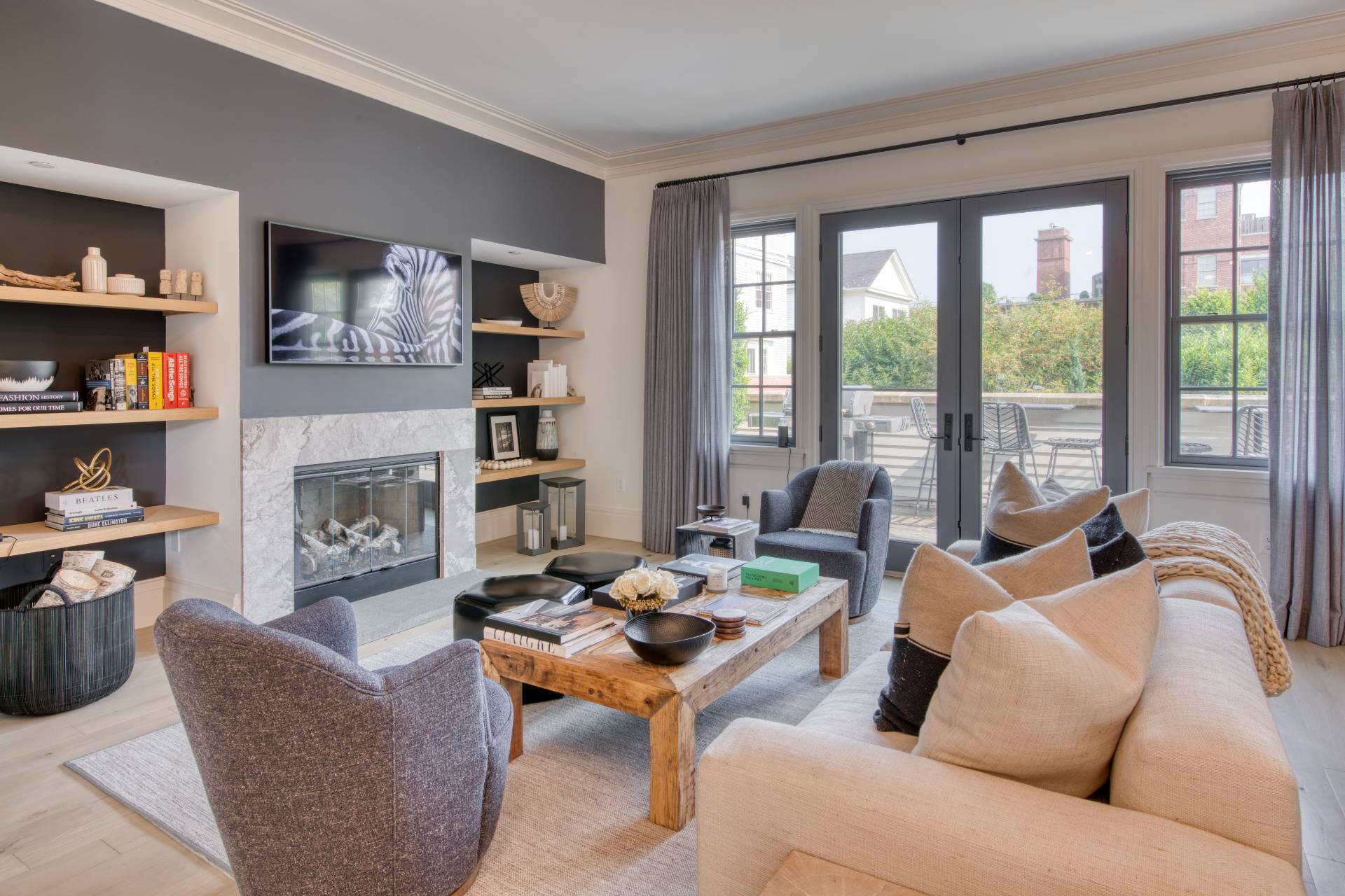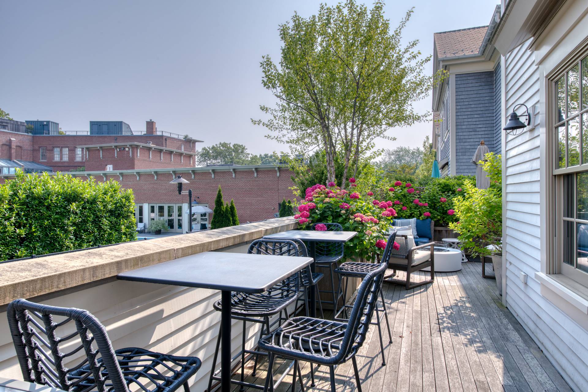 Nestled on peaceful, tree-lined Sage Street, in the heart of coveted Sag Harbor Village, this elegant Colonial Revival-style townhouse offers the perfect blend of historic character and luxurious modern living. Part of the exclusive Watchcase Factory residence collection, this home delivers privacy, space, and resort-style amenities. Just one block from Main Street. Spanning 3,563 square feet with a private elevator, the home features 3 ensuite bedrooms, including a sleep-in den/flex bedroom with a full bath and private entrance, ideal for guests or extended stays. There are 4.5 bathrooms, a dedicated home office, and a private attached garage. Natural light fills the home's thoughtfully designed open layout, enhanced by two working fireplaces and sophisticated finishes. Step outside to enjoy 1,075± square feet of private outdoor living, complete with a large gas grill, a large dining table, and bar-top tables for alfresco meals, a gas fire pit, and an outdoor shower-perfect for year-round entertaining or quiet relaxation. It offers the rare opportunity to enjoy single-family privacy with the full-service convenience of the Watchcase lifestyle. Residents at Watchcase enjoy an unparalleled amenity package that includes a heated outdoor pool with a sun terrace, a fully equipped fitness center, a yoga studio, and a serene spa room. Additional features include a sauna, locker rooms, an elegant event lounge, and the Vault Bar, complete with a cozy double-sided fireplace. Full-service living is at your fingertips with concierge services, an on-site resident manager, porters, and superintendents- all housed within the beautifully appointed Grand Lobby Living Room and other shared spaces. All of this is just moments from Main Street's acclaimed restaurants, boutiques, galleries, and marinas, and only two blocks from the Hamptons' renowned deep-water port. This is village living at its finest.